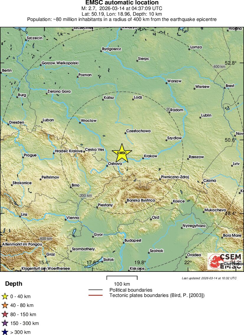 | 2.5 | 10 | 862 | 05:37 | Link | Minor Earthquake - POLAND - Today |