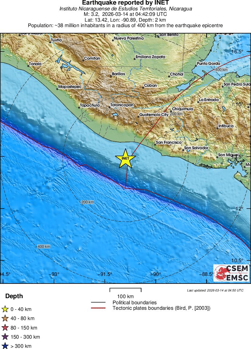 | 3.2 | 2 | 9714 | 05:42 | Link | Minor Earthquake - OFFSHORE GUATEMALA - Today |