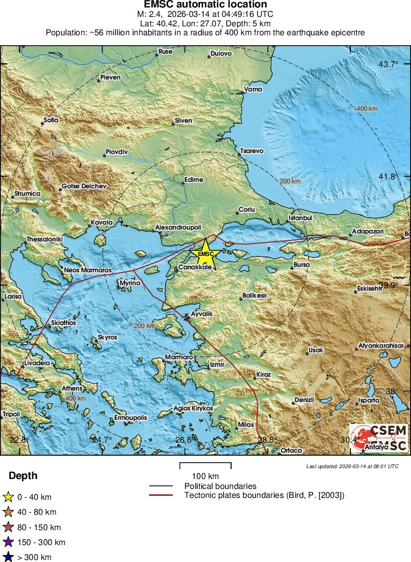 | 1.4 | 16.6 | 1556 | 05:47 | Link | Minor Earthquake - WESTERN TURKEY - Today |