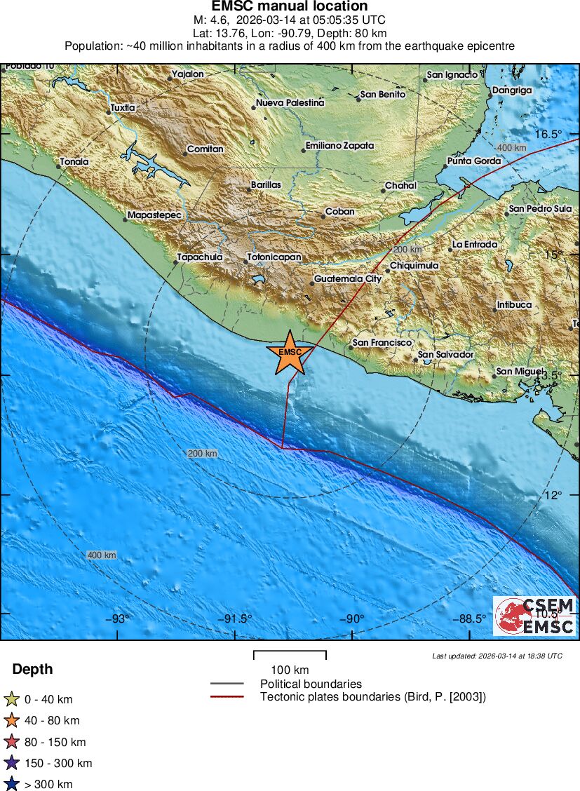| 4.6 | 77.9 | 9669 | 06:05 | Link | Light Earthquake - OFFSHORE GUATEMALA - Today |