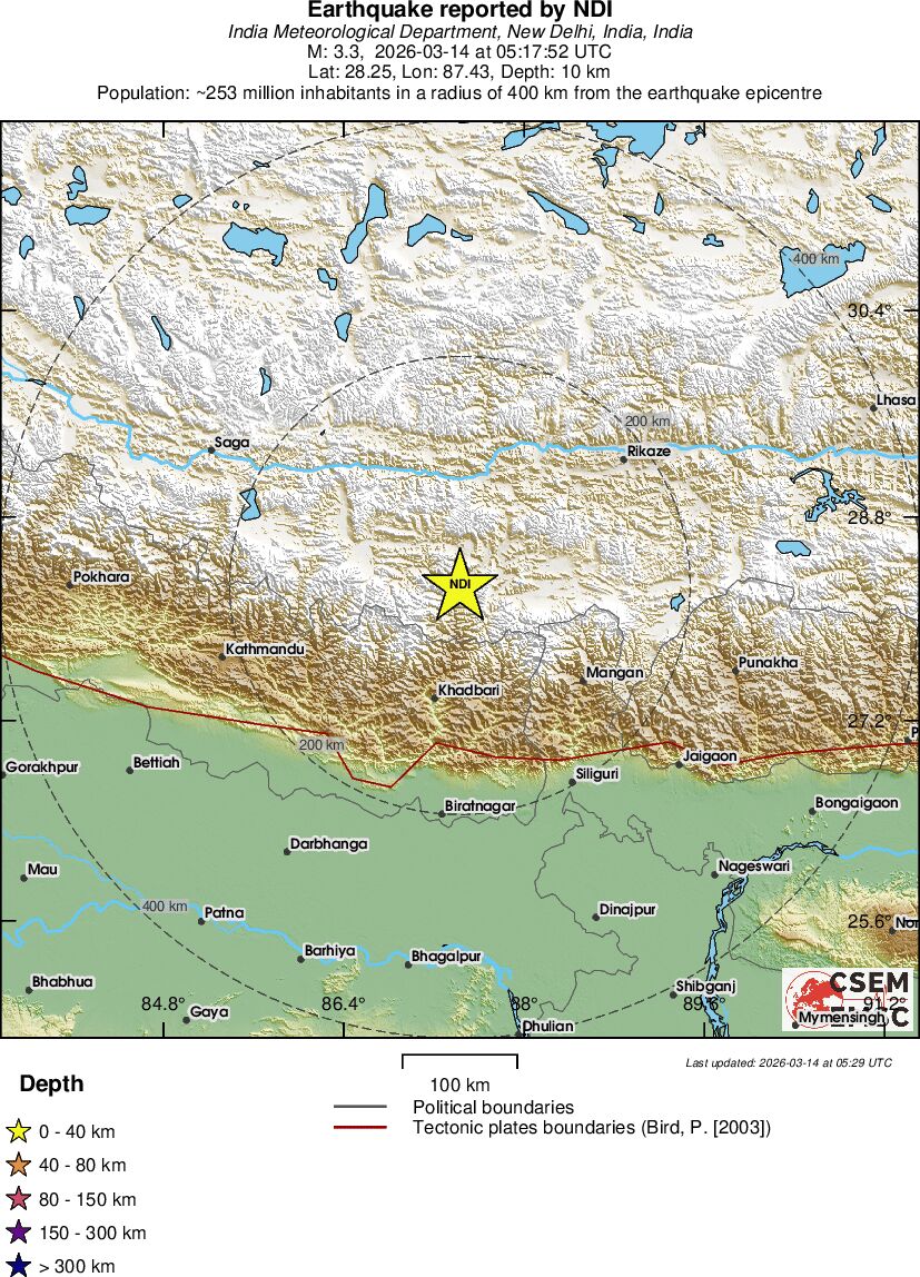| 3.3 | 10 | 6917 | 06:17 | Link | Minor Earthquake - WESTERN XIZANG - Today |