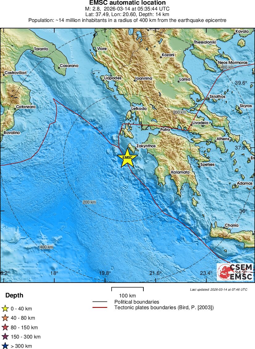 | 2.8 | 16.7 | 1317 | 06:35 | Link | Minor Earthquake - IONIAN SEA - Today |