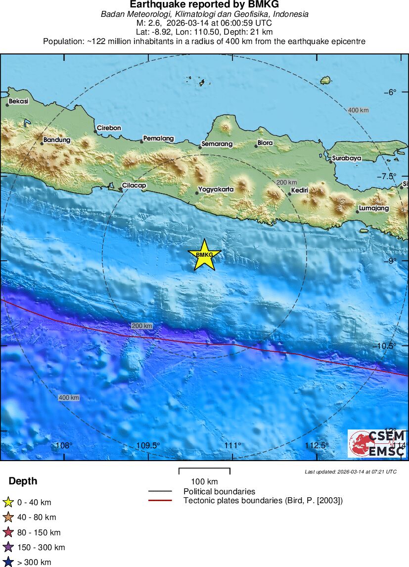 | 2.5 | 24 | 11578 | 07:01 | Link | Minor Earthquake - JAVA, INDONESIA - Today |