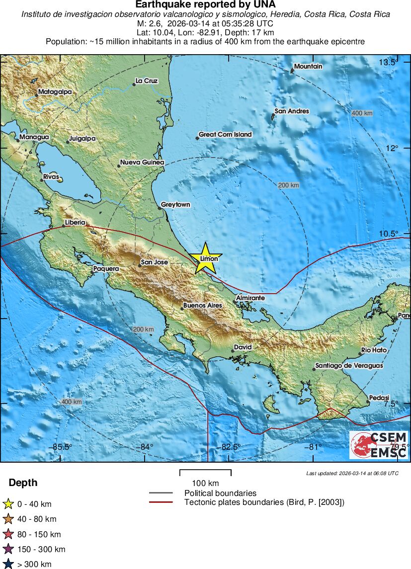 | 2.6 | 17 | 9382 | 06:35 | Link | Minor Earthquake - NORTH OF PANAMA - Today |