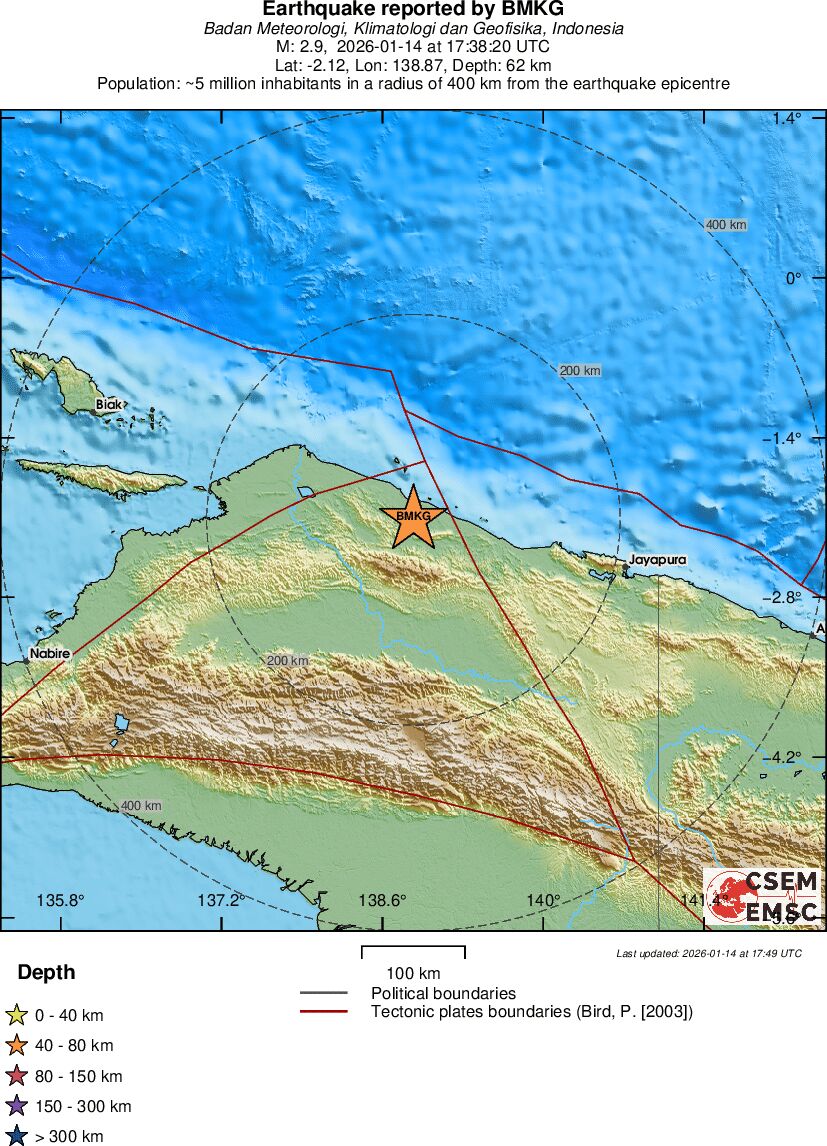 | 2.9 | 62 | 8153 | 18:38 | Poveznica | Manji potres - PAPUA, INDONESIA - Danas |