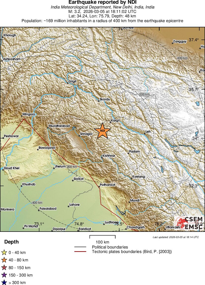 | 3.2 | 47.6 | 3501 | 19:11 | Collegamento | Terremoto minore - EASTERN KASHMIR - Oggi |
