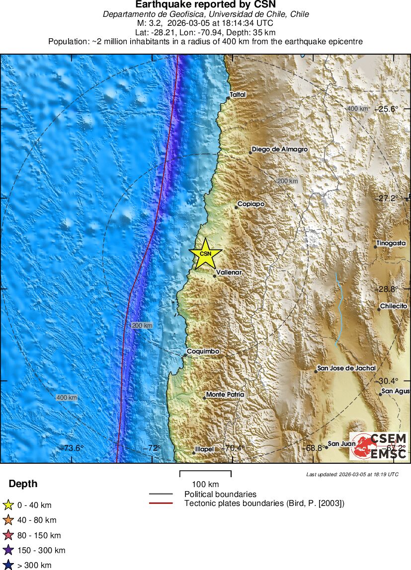| 3.2 | 35 | 11523 | 19:14 | Link | Terremoto menor - ATACAMA, CHILE - Hoje |