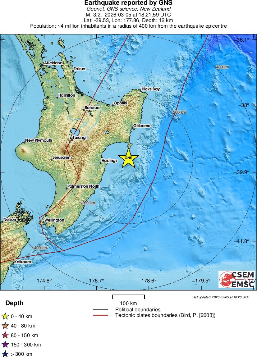 | 3.2 | 12 | 18844 | 19:21 | Link | Terremoto menor - OFF E. COAST OF N. ISLAND, N.Z. - Hoje |