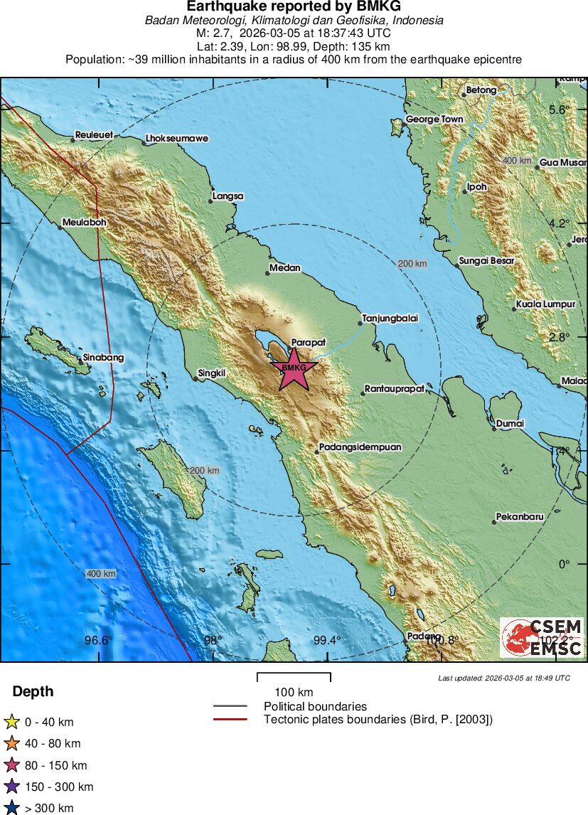 | 2.7 | 135 | 9789 | 19:37 | Link | Terremoto menor - NORTHERN SUMATRA, INDONESIA - Hoje |