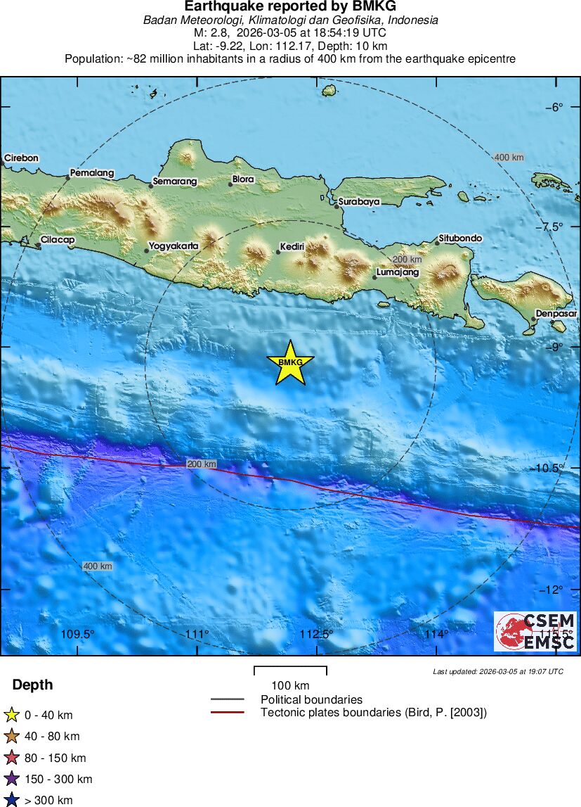 | 2.8 | 10 | 11733 | 19:54 | Link | Terremoto menor - SOUTH OF JAVA, INDONESIA - Hoje |