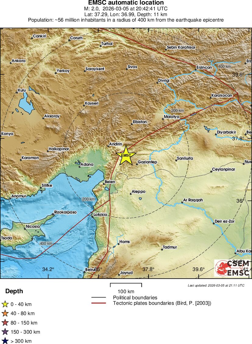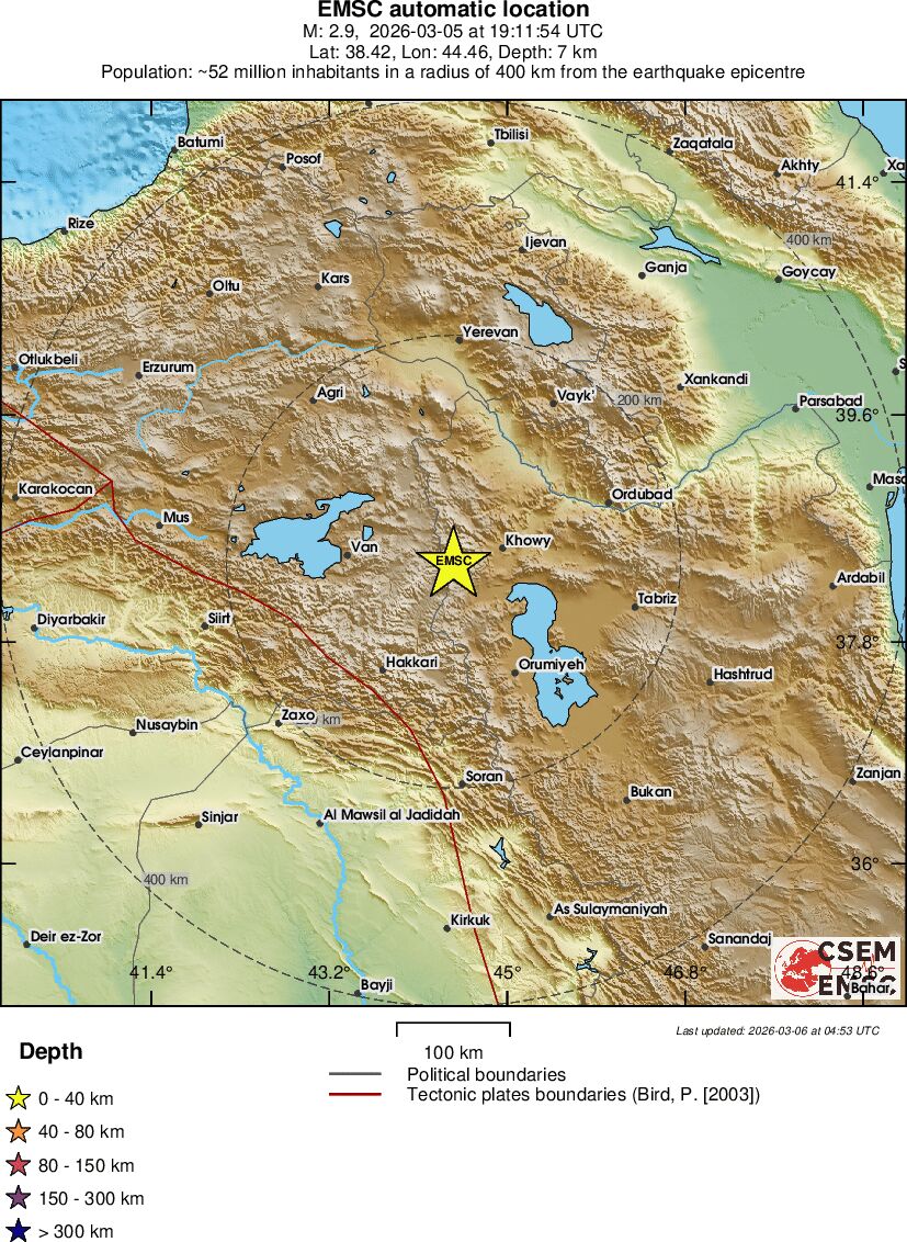 | 2.9 | 12.3 | 2985 | 20:11 | Link | Terremoto menor - TURKEY-IRAN BORDER REGION - Hoje |