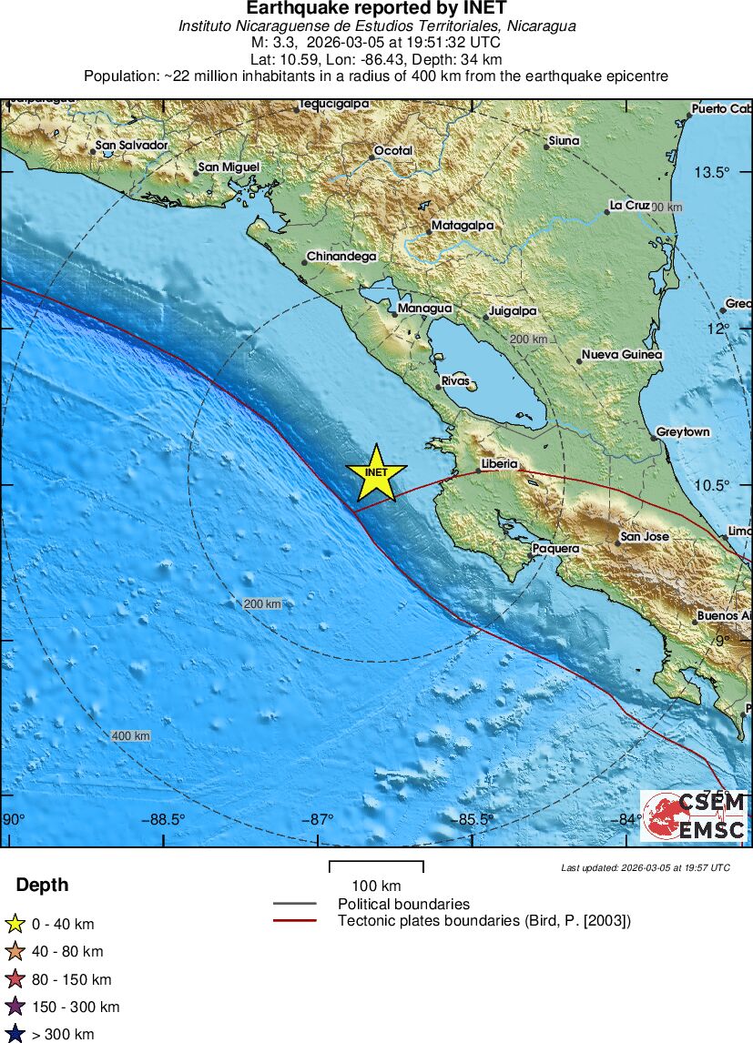 | 3.3 | 34 | 9607 | 20:51 | Link | Terremoto menor - OFF COAST OF COSTA RICA - Hoje |