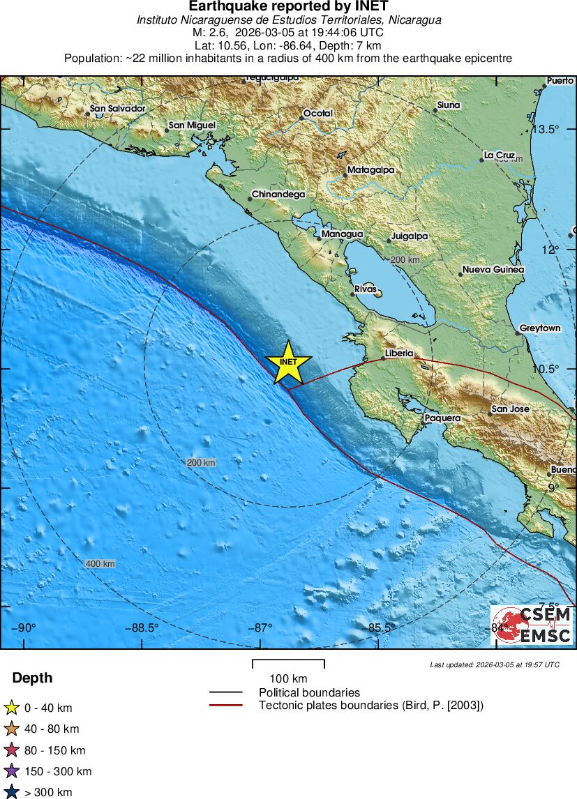| 2.6 | 7 | 9625 | 20:44 | Link | Terremoto menor - OFF COAST OF COSTA RICA - Hoje |