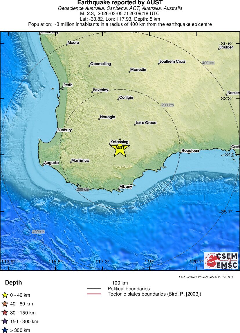 | 2.7 | 2 | 13977 | 21:09 | Link | Terremoto menor - WESTERN AUSTRALIA - Hoje |