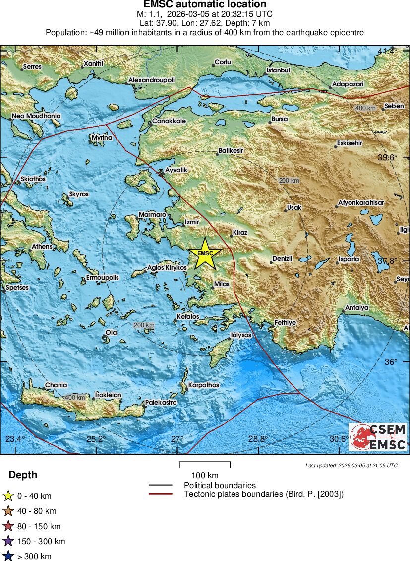 | 1.1 | 7 | 1745 | 21:32 | Enllaç | Terratrèmol menor - WESTERN TURKEY - Avui |