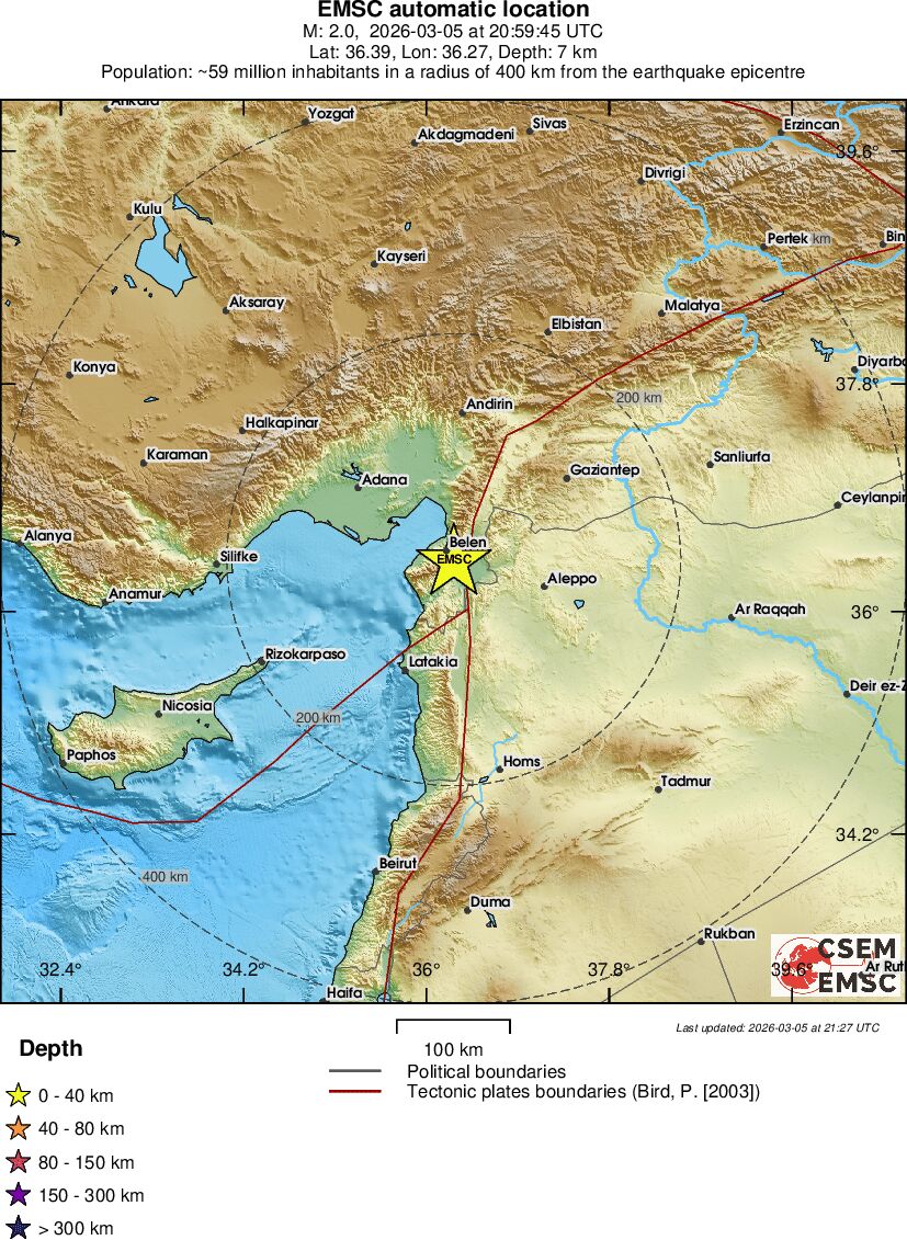 | 2 | 5.3 | 2464 | 21:59 | Enllaç | Terratrèmol menor - TURKEY-SYRIA BORDER REGION - Avui |