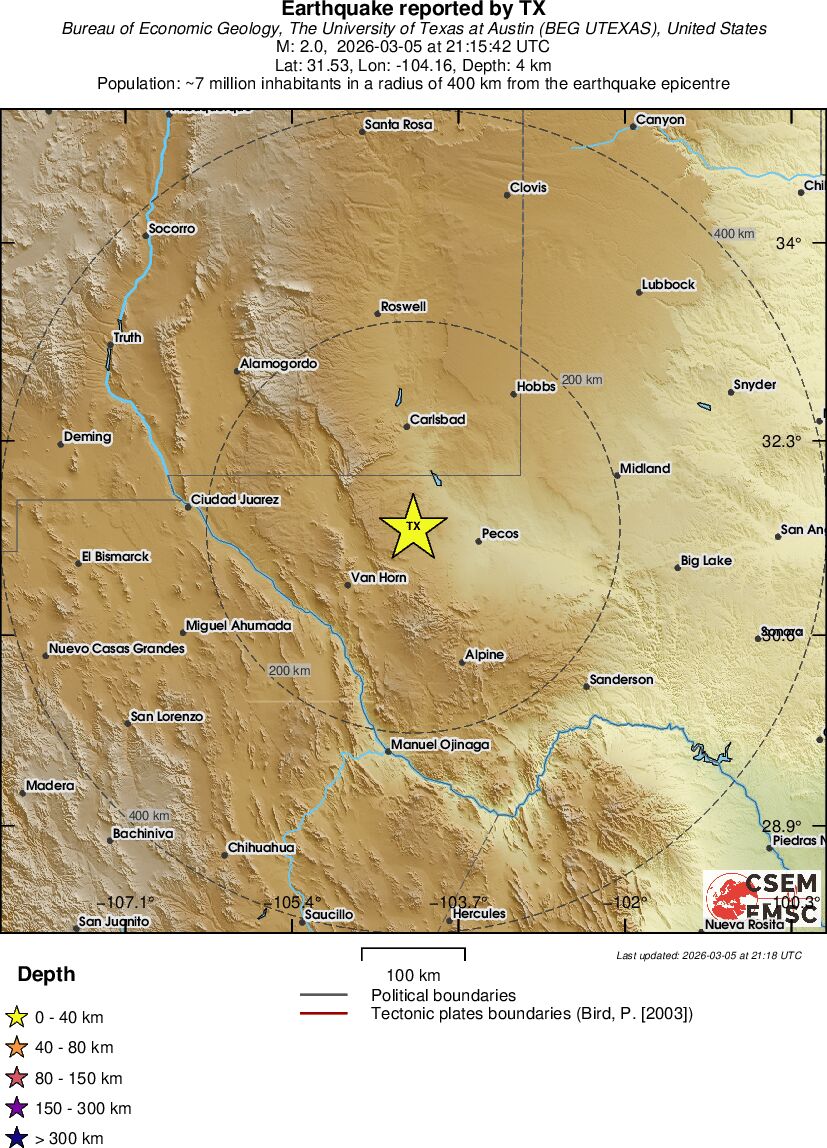 | 2 | 4.2 | 9124 | 22:15 | Enllaç | Terratrèmol menor - WESTERN TEXAS - Avui |