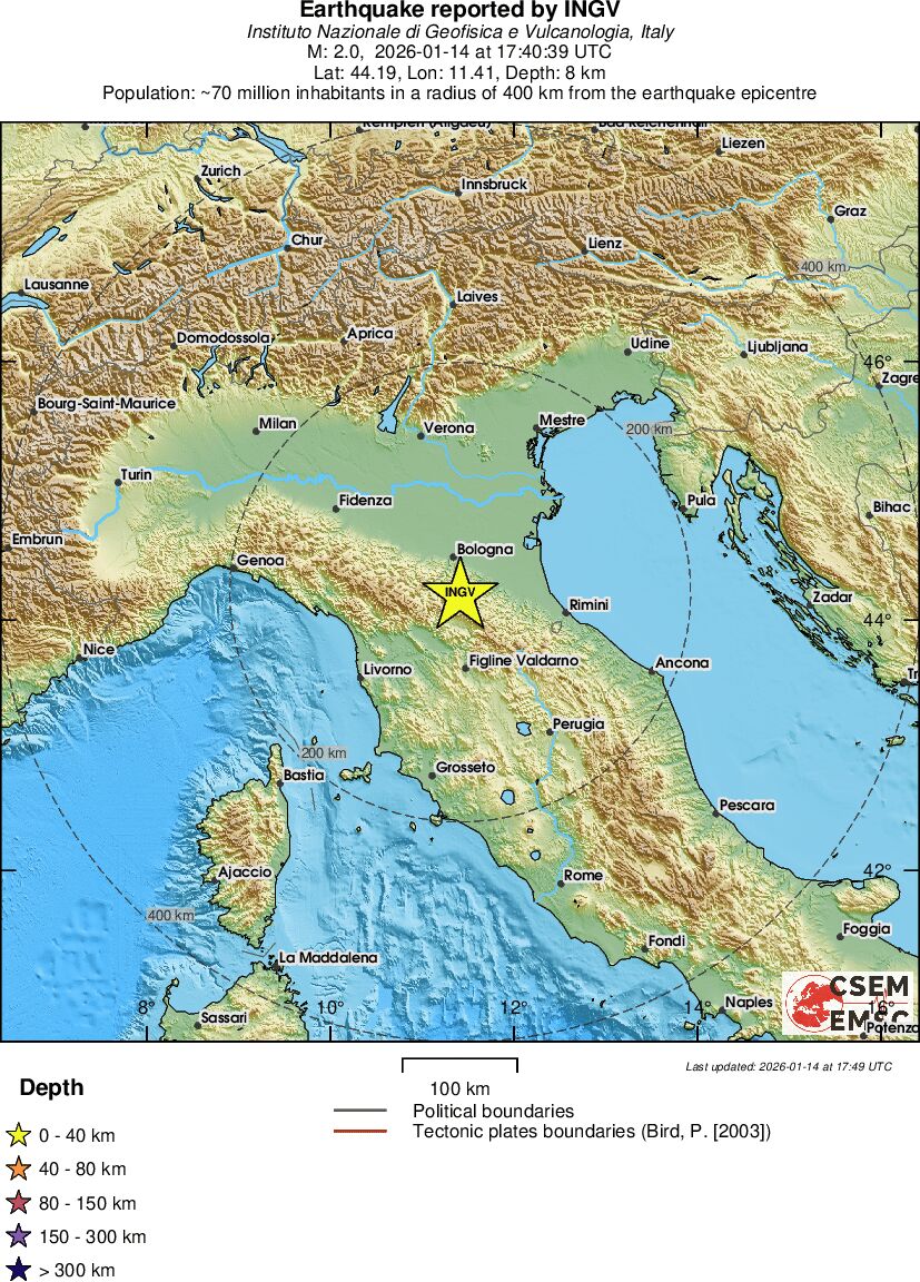 | 2 | 7.5 | 152 | 18:40 | Link | Mindre jordskælv - NORTHERN ITALY - I dag |