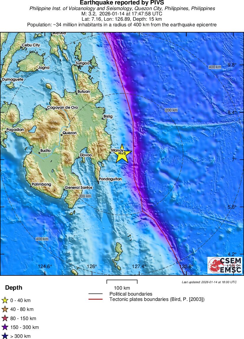 | 3.2 | 15 | 7138 | 18:47 | Link | Mindre jordskælv - MINDANAO, PHILIPPINES - I dag |