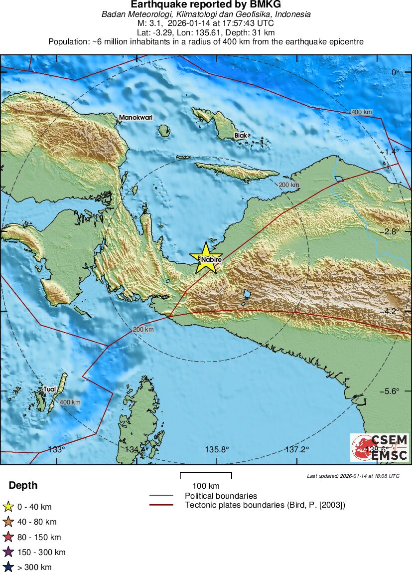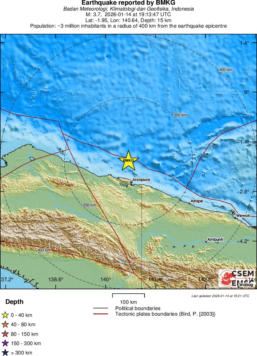 | 3.7 | 15 | 8218 | 20:13 | Link | Mindre jordskælv - PAPUA REGION, INDONESIA - I dag |