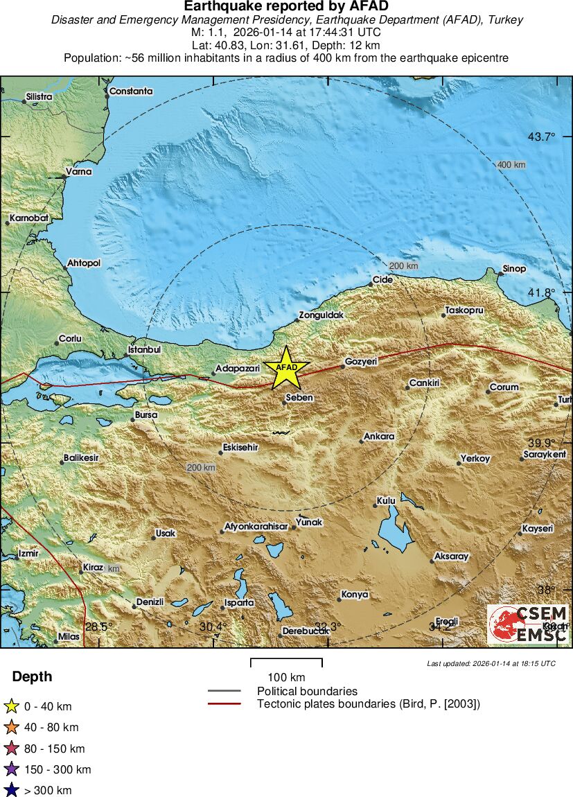 | 1.4 | 7.3 | 1606 | 18:56 | Link | Mindre jordskælv - EASTERN TURKEY - I dag |