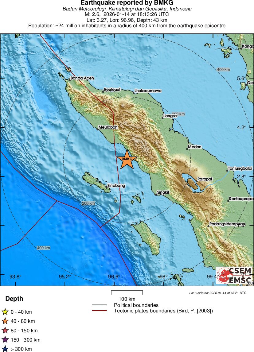 | 2.6 | 43 | 5942 | 19:13 | Link | Mindre jordskælv - NORTHERN SUMATRA, INDONESIA - I dag |