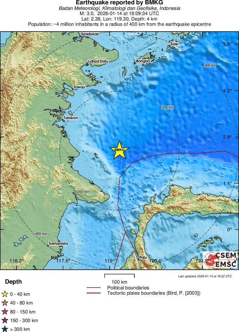 | 3 | 4 | 7046 | 19:09 | Link | Mindre jordskælv - CELEBES SEA - I dag |