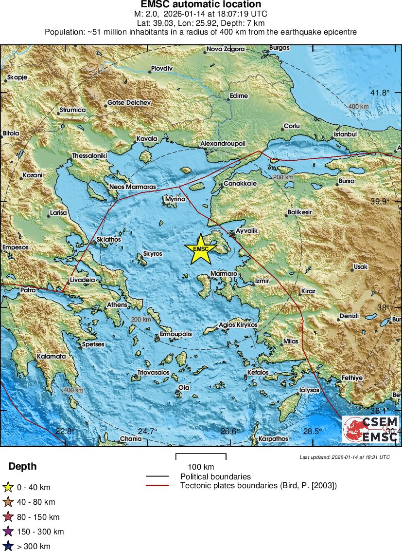 | 2 | 6.8 | 965 | 19:07 | Link | Mindre jordskælv - AEGEAN SEA - I dag |
