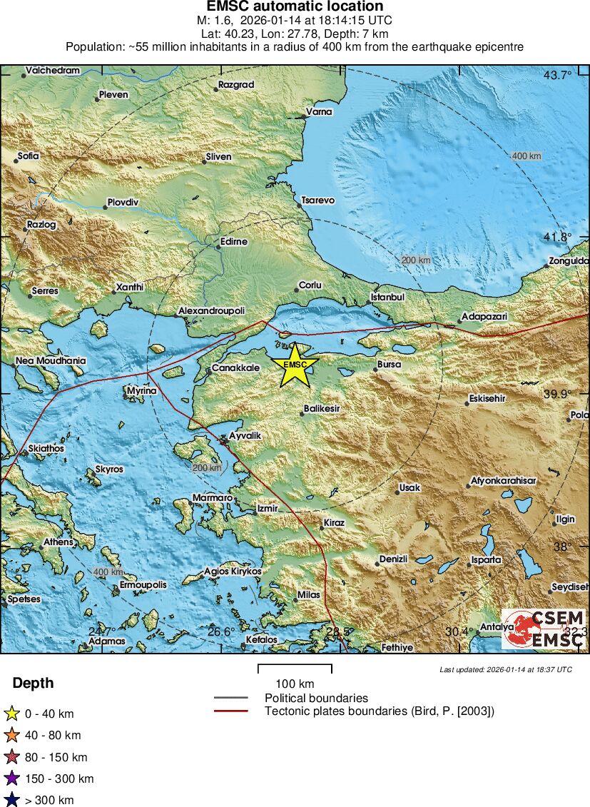 | 1.7 | 5.5 | 1063 | 19:32 | Link | Mindre jordskælv - WESTERN TURKEY - I dag |