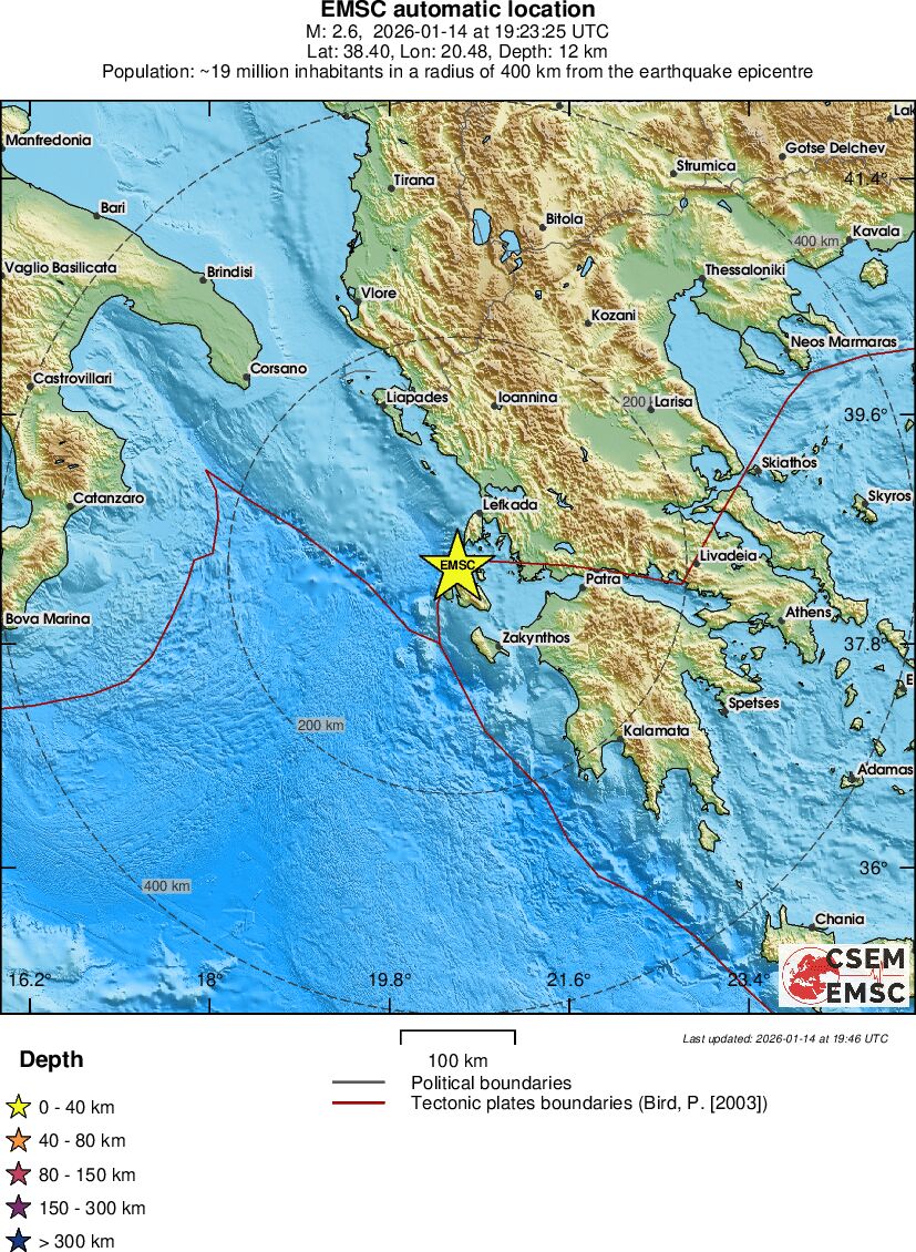 | 2.6 | 12.3 | 767 | 20:23 | Link | Mindre jordskælv - GREECE - I dag |