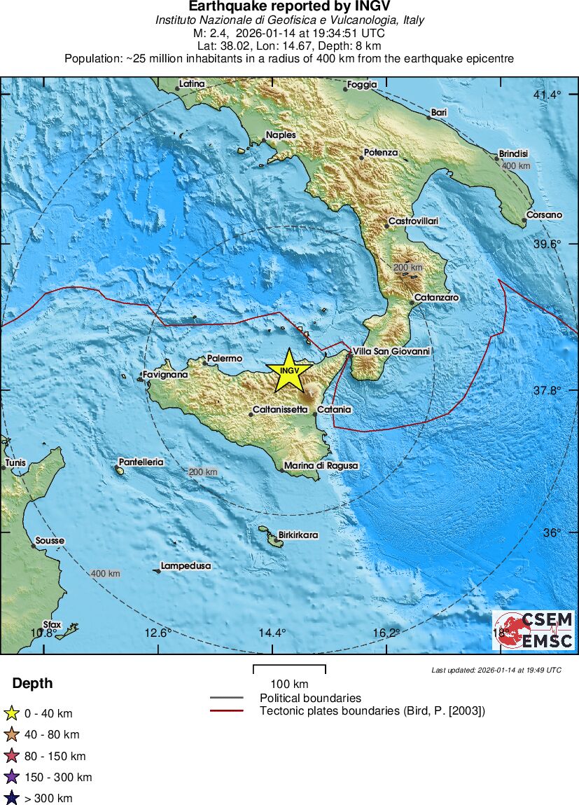 | 2.4 | 8.3 | 606 | 20:34 | Link | Mindre jordskælv - SICILY, ITALY - I dag |