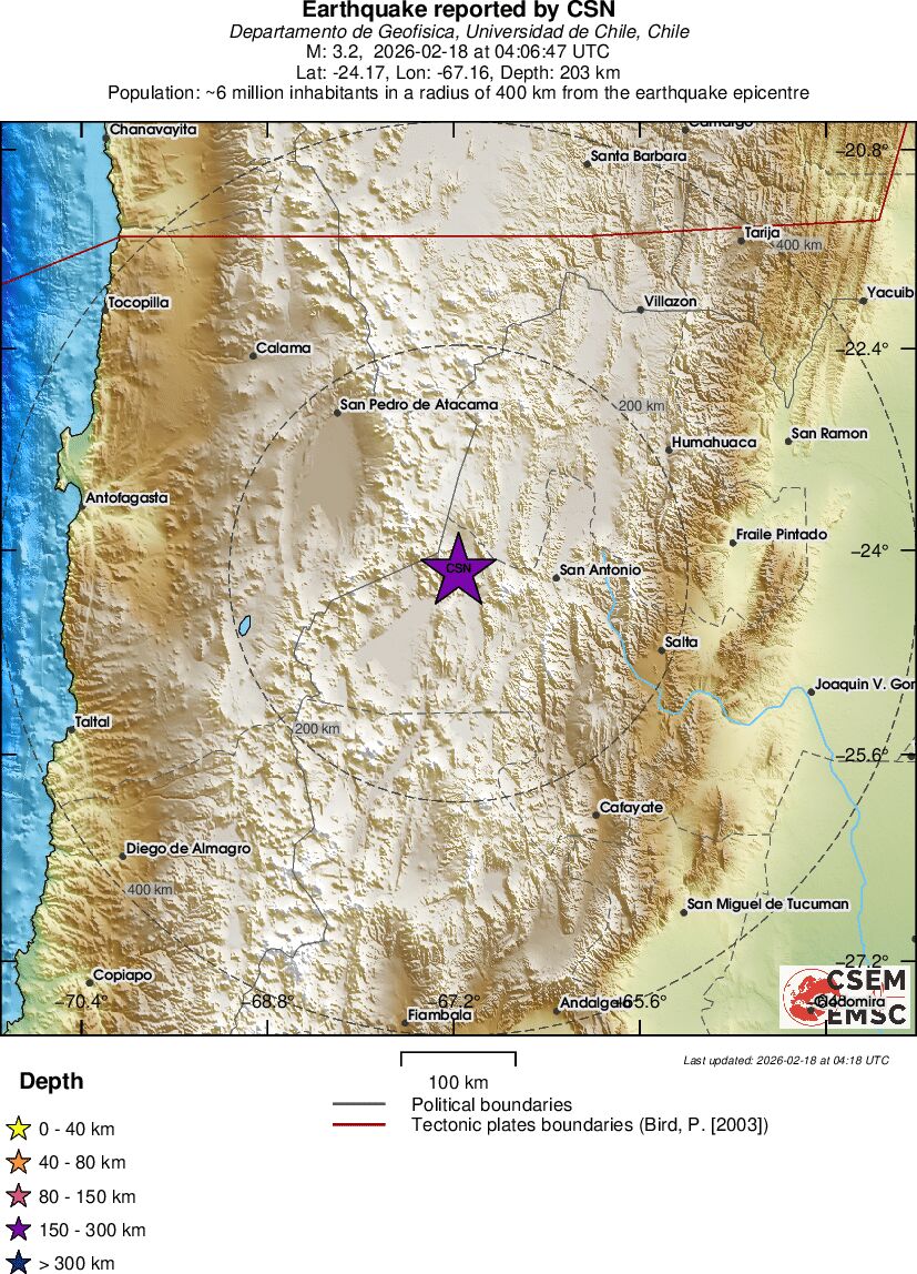 | 3.2 | 202.6 | 10938 | 05:06 | Enlace | Terremoto pequeño - SALTA, ARGENTINA - Hoy |