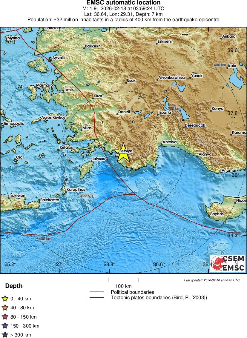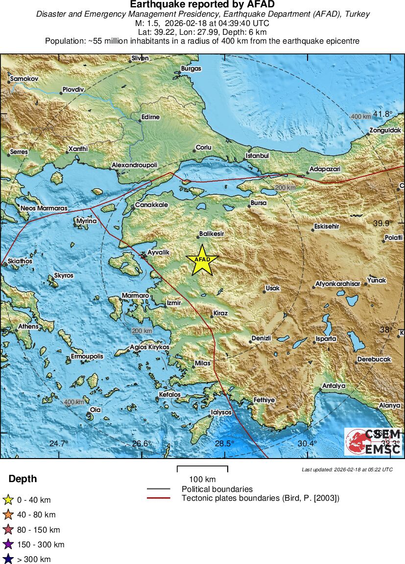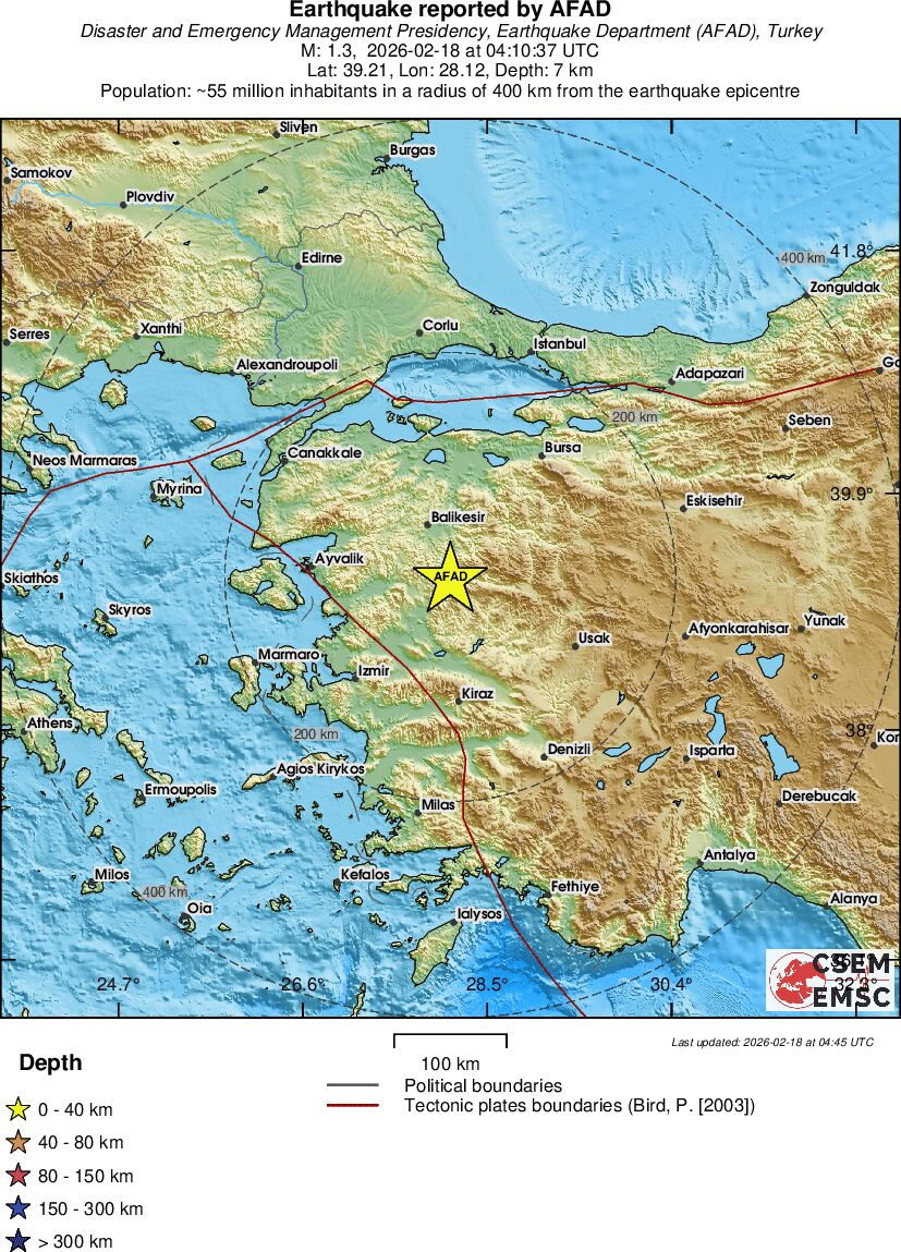 | 1.3 | 7 | 1718 | 05:01 | Enlace | Terremoto pequeño - WESTERN TURKEY - Hoy |