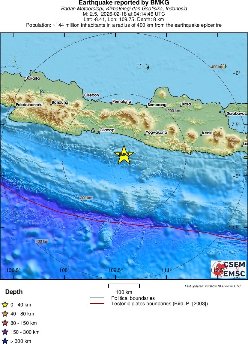 | 2.5 | 8 | 11482 | 05:14 | Enlace | Terremoto pequeño - JAVA, INDONESIA - Hoy |