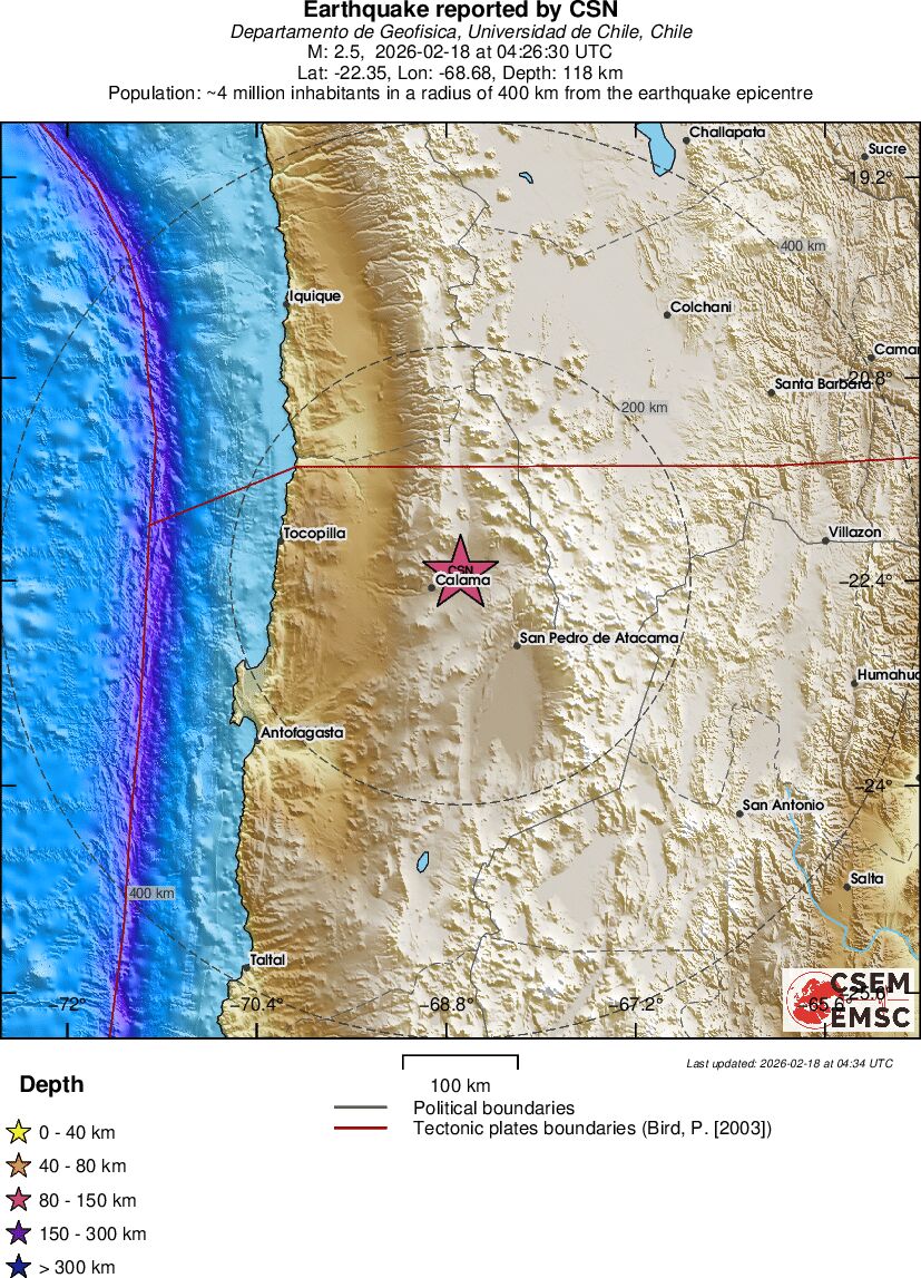 | 2.5 | 118.1 | 10897 | 05:26 | Enlace | Terremoto pequeño - ANTOFAGASTA, CHILE - Hoy |