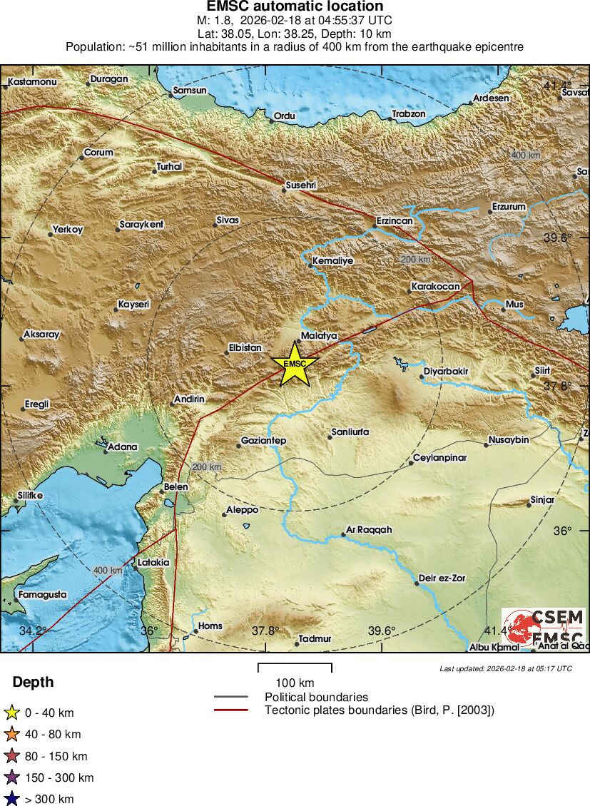 | 1.8 | 9.7 | 2526 | 05:55 | Enlace | Terremoto pequeño - EASTERN TURKEY - Hoy |