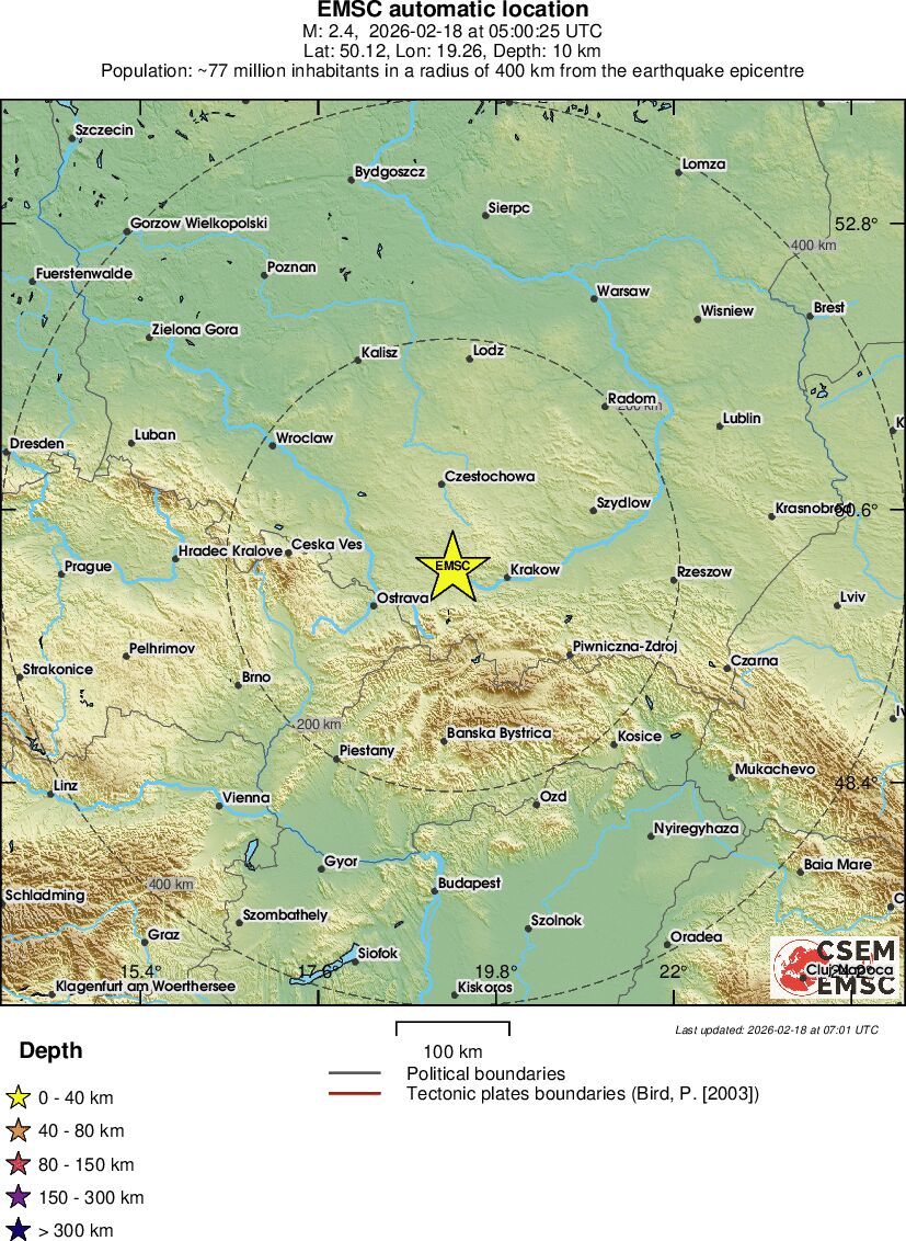 | 2.4 | 10 | 879 | 06:00 | Enlace | Terremoto pequeño - POLAND - Hoy |
