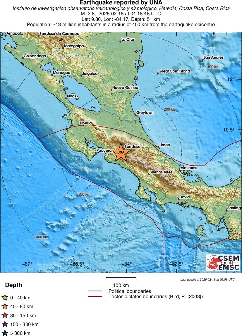 | 2.8 | 51 | 9497 | 05:18 | Enlace | Terremoto pequeño - COSTA RICA - Hoy |