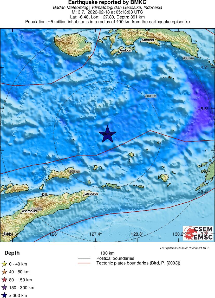 | 3.7 | 391 | 12704 | 06:13 | Enlace | Terremoto pequeño - BANDA SEA - Hoy |