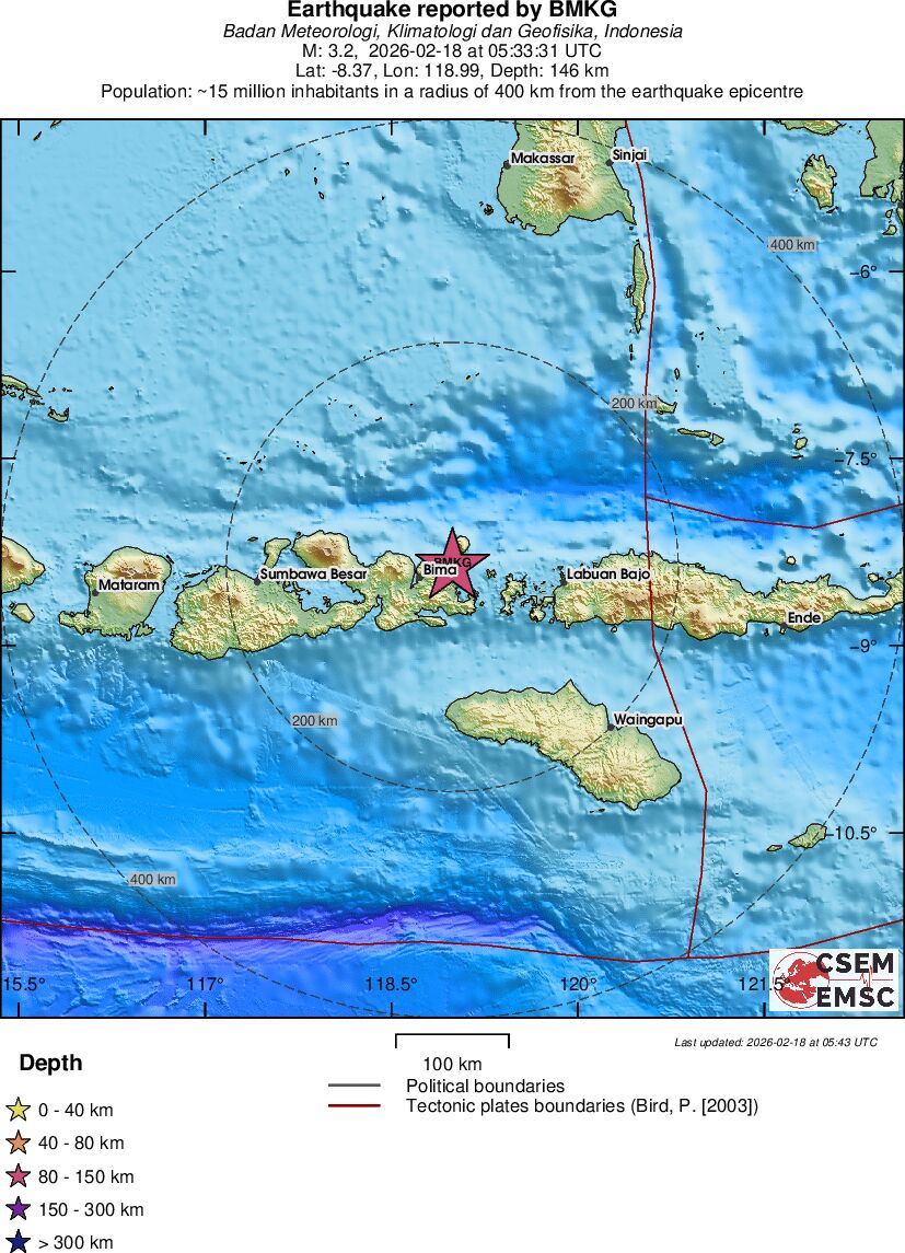 | 3.2 | 146 | 12191 | 06:33 | Enlace | Terremoto pequeño - SUMBAWA REGION, INDONESIA - Hoy |