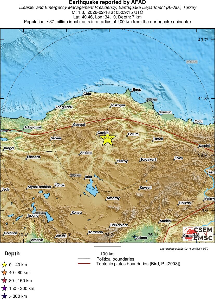| 1.3 | 7 | 2085 | 06:09 | Enlace | Terremoto pequeño - CENTRAL TURKEY - Hoy |