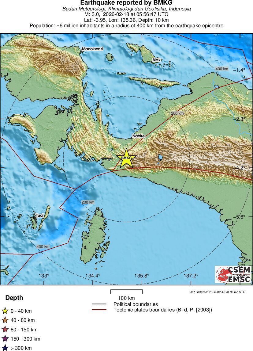 | 3 | 10 | 13038 | 06:56 | Enlace | Terremoto pequeño - PAPUA, INDONESIA - Hoy |