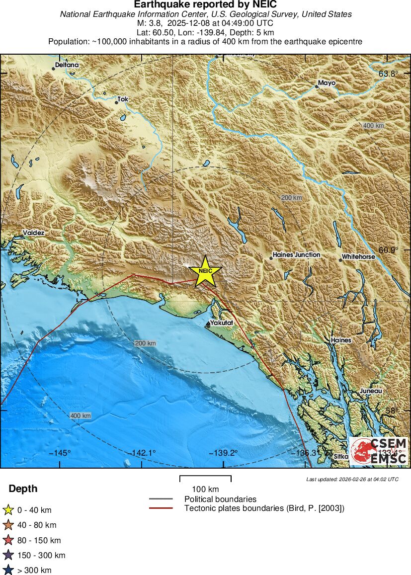 | 3.6 | 5 | 7863 | 05:49 | Link | Kleine beving - SOUTHERN YUKON TERRITORY, CANADA - Vandaag |