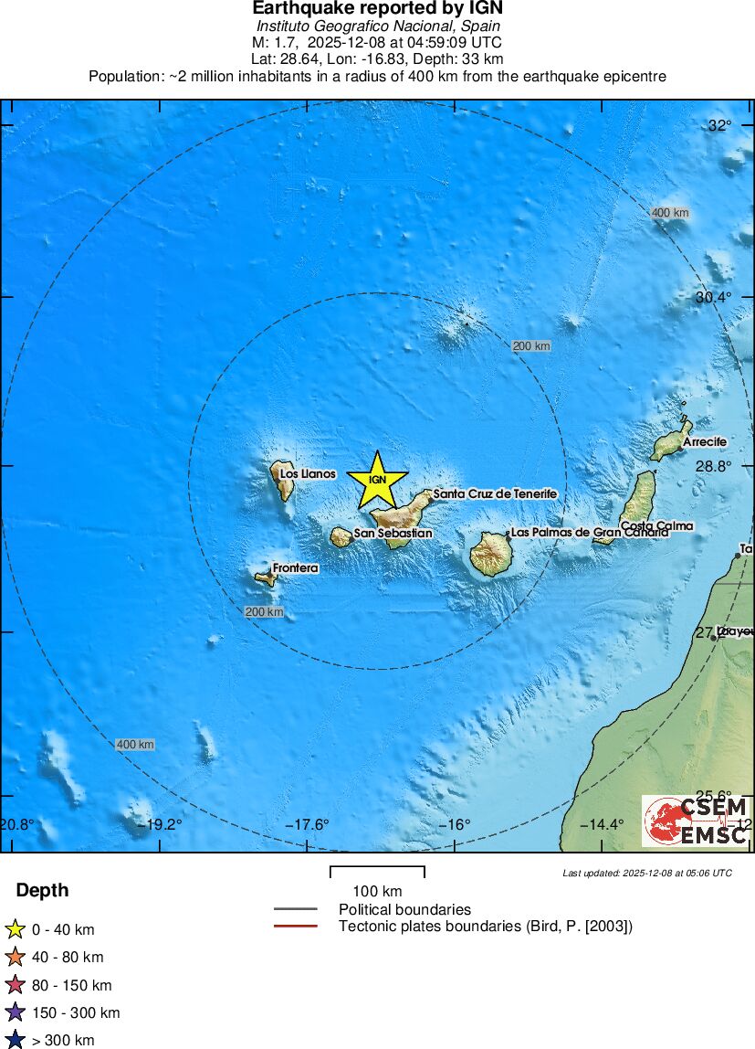 | 1.7 | 32.9 | 2981 | 05:59 | Link | Kleine beving - CANARY ISLANDS, SPAIN REGION - Vandaag |