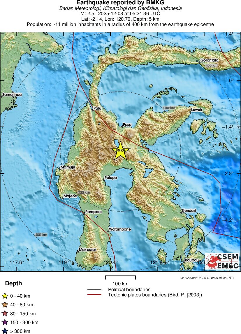 | 2.5 | 5 | 11817 | 06:24 | Link | Kleine beving - SULAWESI, INDONESIA - Vandaag |