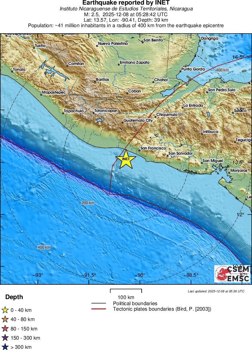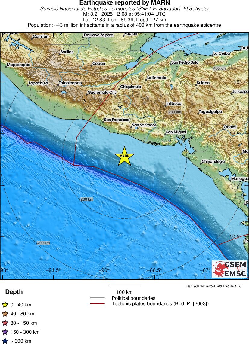 | 3.2 | 26.7 | 9650 | 06:41 | Link | Kleine beving - OFFSHORE EL SALVADOR - Vandaag |