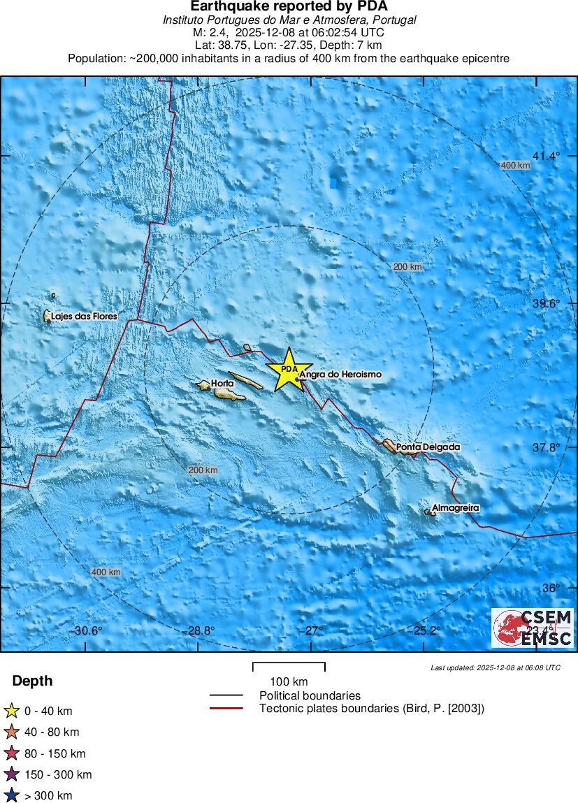 | 2.4 | 7.2 | 3090 | 07:02 | Link | Kleine beving - AZORES ISLANDS, PORTUGAL - Vandaag |