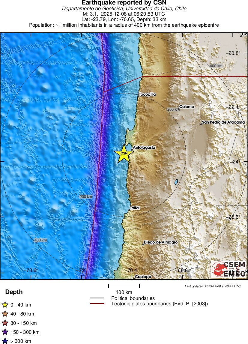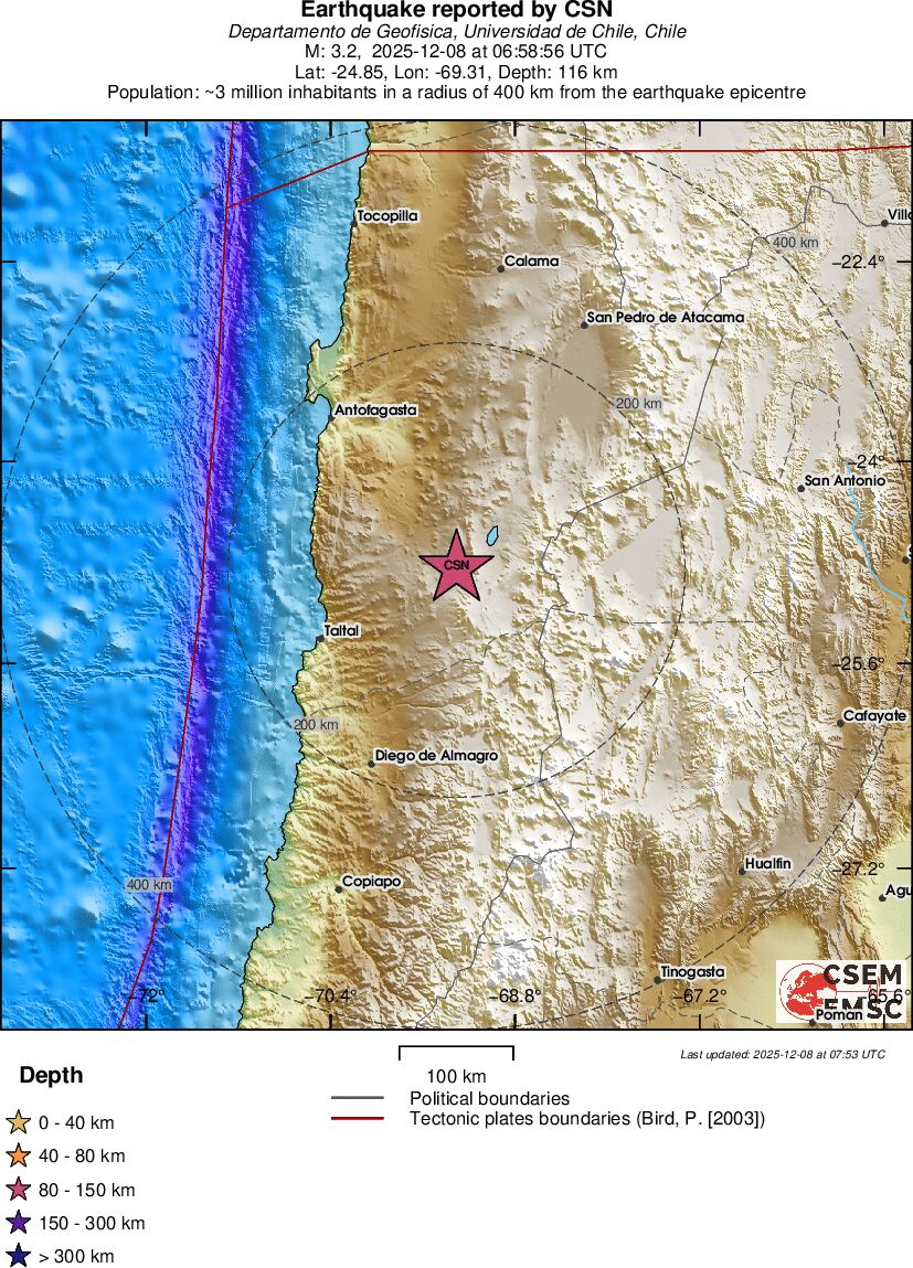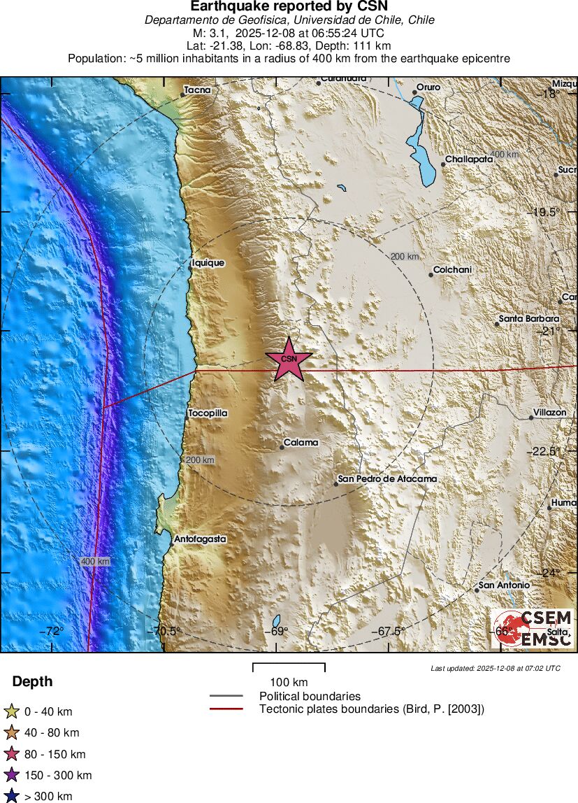 | 3.1 | 111.3 | 10830 | 07:55 | Link | Kleine beving - ANTOFAGASTA, CHILE - Vandaag |