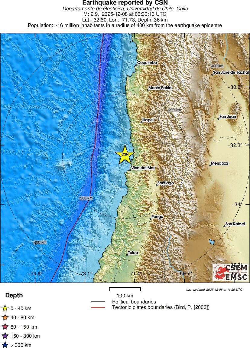 | 3 | 34.2 | 11918 | 07:36 | Link | Kleine beving - OFFSHORE VALPARAISO, CHILE - Vandaag |