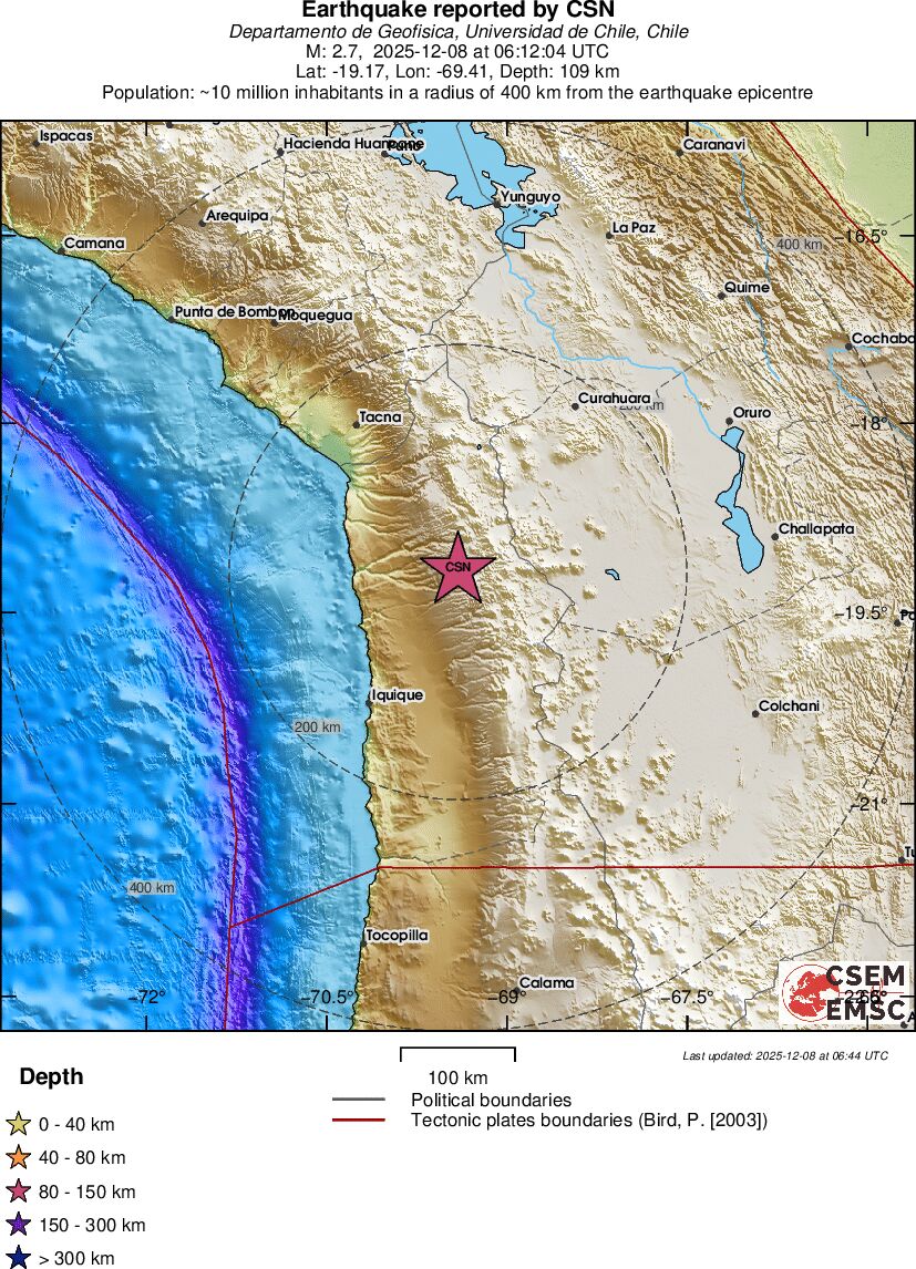 | 2.7 | 108.8 | 10693 | 07:12 | Link | Kleine beving - TARAPACA, CHILE - Vandaag |
